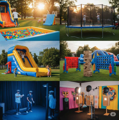 At Memories4rKidz, our mission is to deliver unforgettable, joy-filled event experiences by offering a diverse range of interactive rentals that spark play, creativity, and connection. From bouncy inflatables and soft play zones to VR games, photo booths, and custom wedding games, we bring the perfect mix of classic fun and cutting-edge entertainment to every celebration. Whether it’ s a birthday, wedding, festival, or corporate event, we aim to make every moment more magical — one memory at a time.